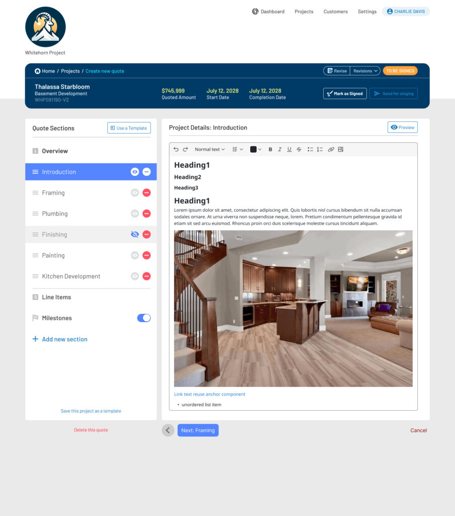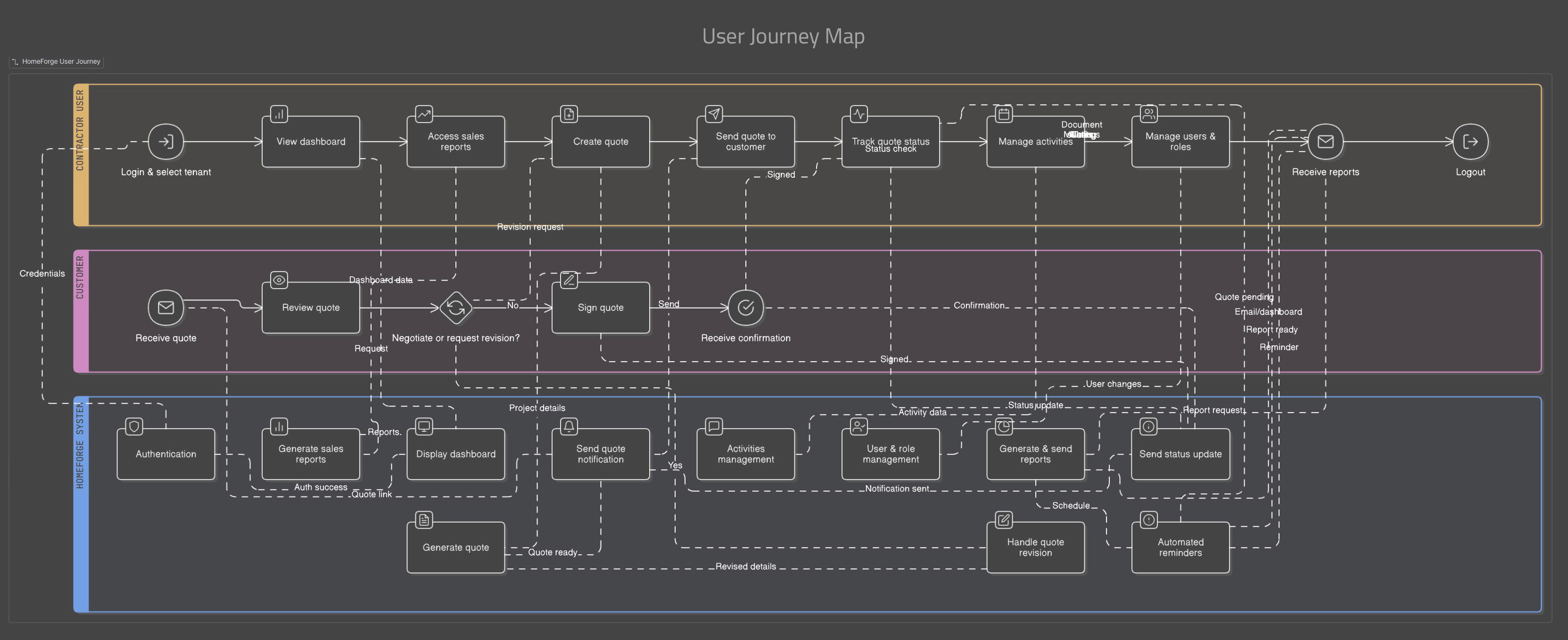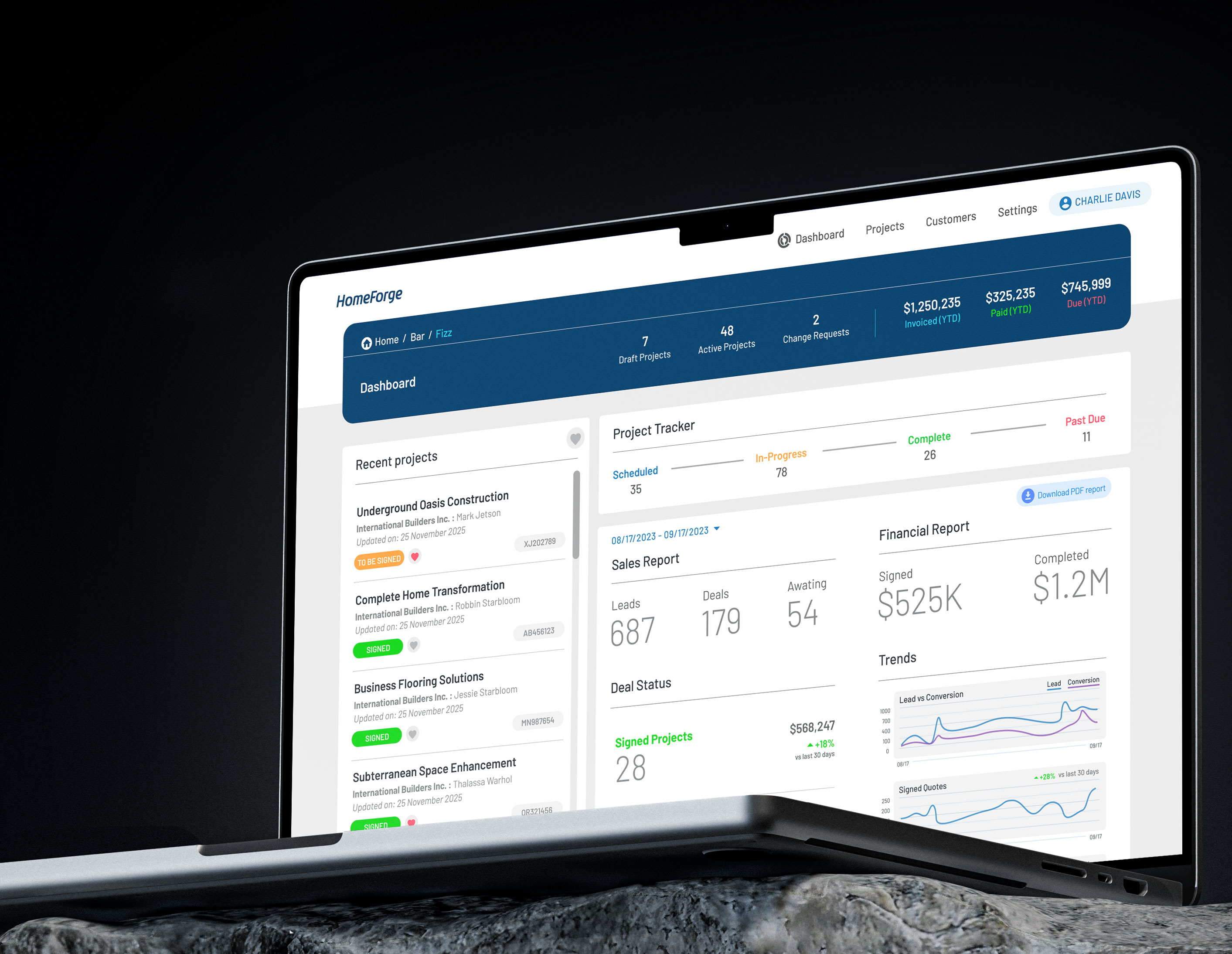 HomeForge is a construction-focused SaaS platform designed to help builders and contractors manage the full lifecycle of a project, from lead intake and quoting to job execution, asset tracking, and client communication.