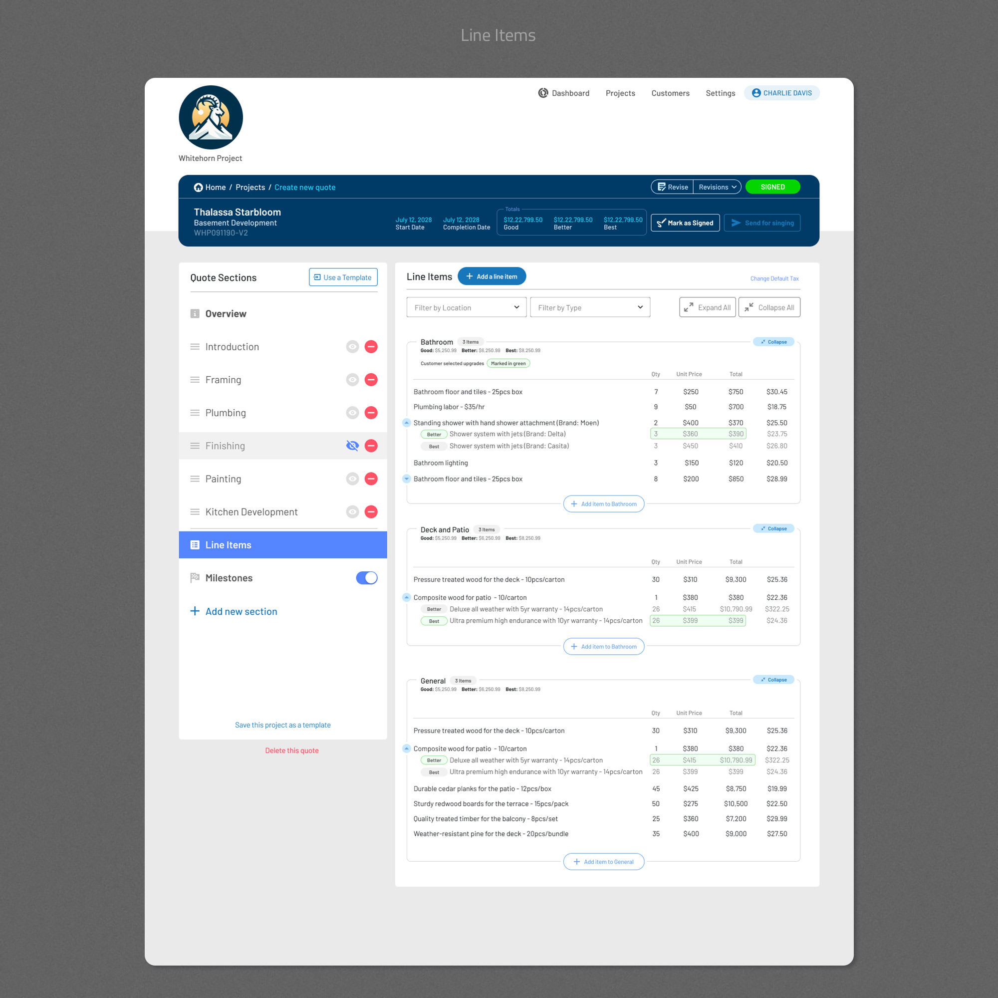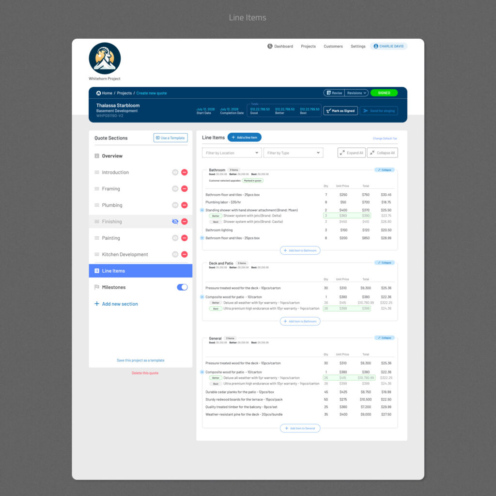 - Optional upgrades (Good / Better / Best) are visually grouped and easy to compare